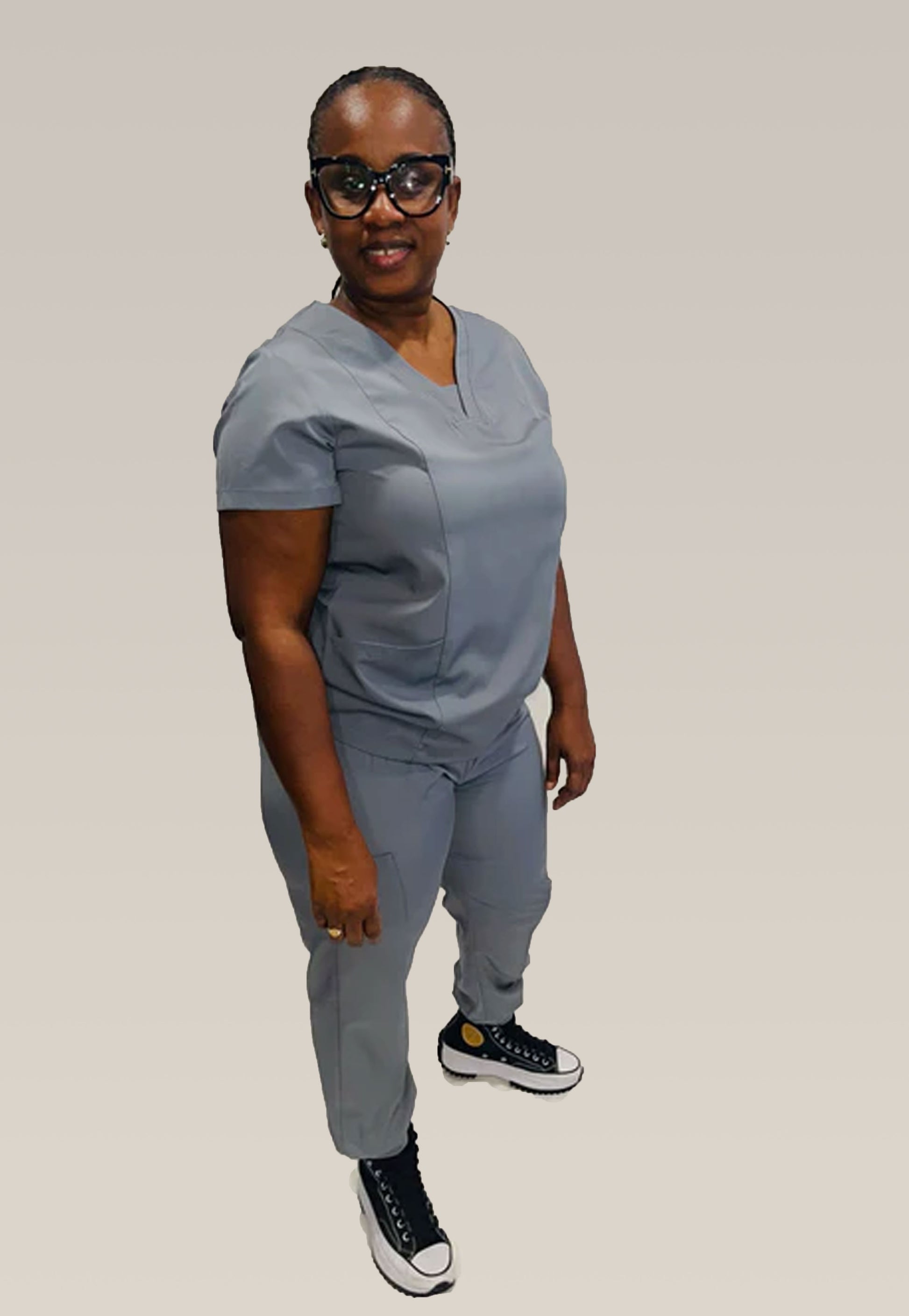 Women's Scrub Set, V-Neck, Multi-Pocketed, Joggers, Elastic Pants Waist, Soft, Light, 4-way Stretch, Comfortable, Quick Dry.